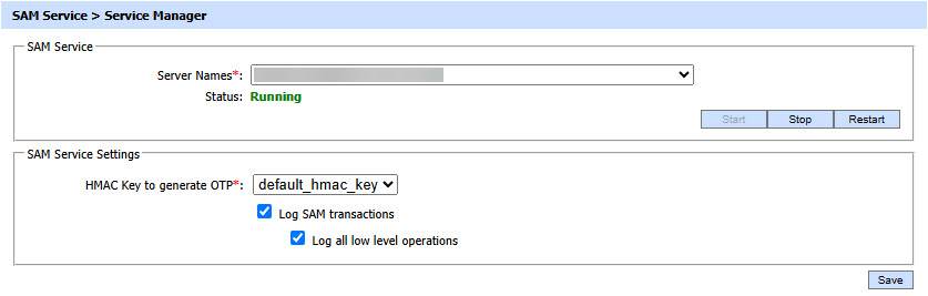 After making configuration changes within the ADSS SAM Service the service must be restarted for the changes to take effect. The SAM service manager module allows operators to start, stop or restart the SAM service and also make changes to service related configurations. Click on the "Service Manager" button and this screen is shown: