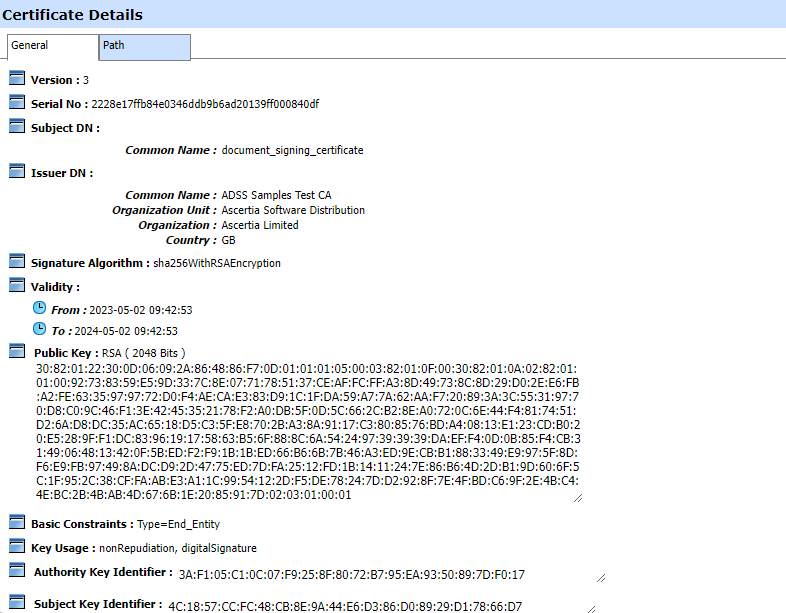 This field shows the TLS client authentication certificate of Certification Service. The Certification Service use this certificate while communicating with SPOC. |