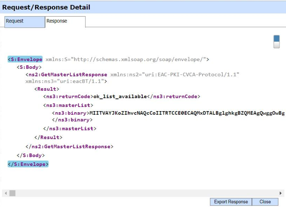 You can export the request/response XML files on to a physical drive by clicking the relevant Export button.