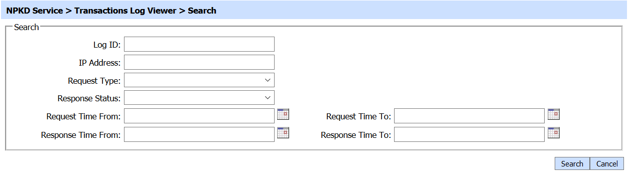 As explained above, clicking on the Search button on certification Transactions Log Viewer displays following screen: