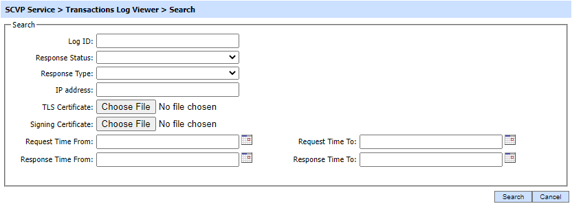 As explained above, clicking on the Search button on SCVP Transactions Log Viewer displays following screen: