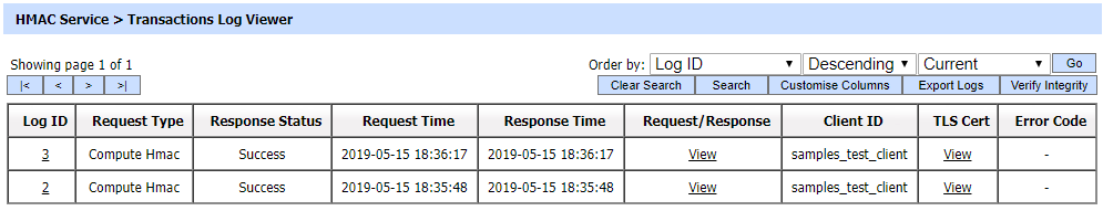As explained above, clicking on the Search button on HMAC Transactions Log Viewer displays following screen: