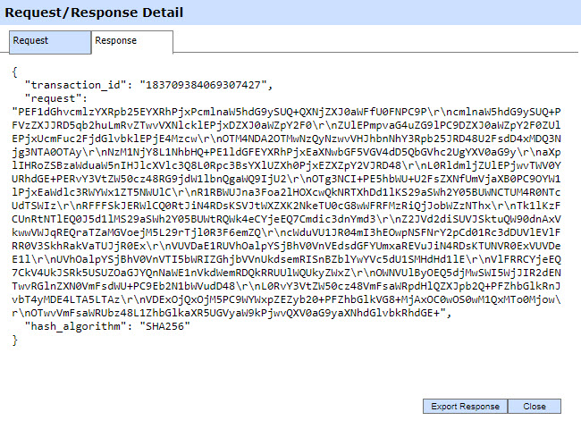 You can export the request/response JSON files on to a physical drive by clicking the relevant Export Response button.