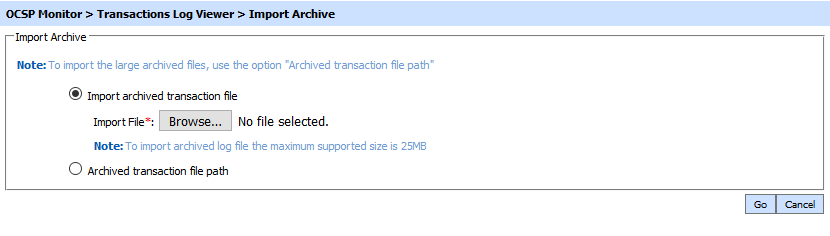 Note that archived transaction records are only temporarily imported into the OCSP Monitor database and then removed when you stop viewing the records.