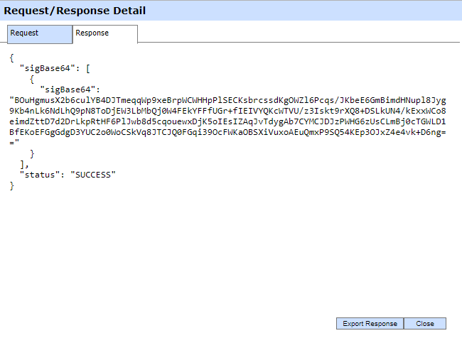 Clicking on the View link for Request/Response displays the request and response sent or received during this transaction as shown below: