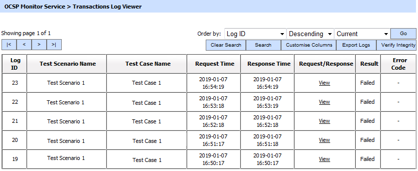 Verify Integrity feature is available for the transactions log of all services within ADSS Server. |