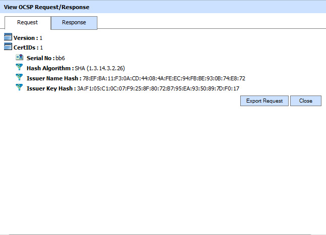 Clicking on either View link within the Request column or the Show Request button shows the OCSP Repeater request involved in this transaction as shown below: