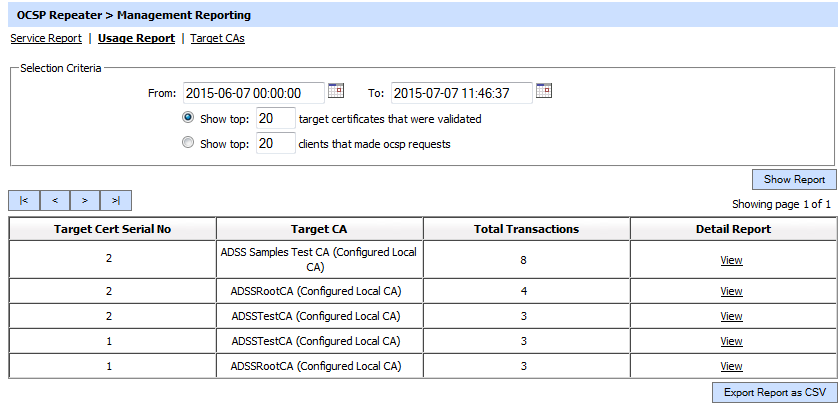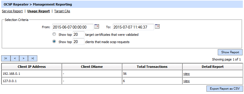 This type of report is useful for reviewing which clients are making request to your service and who the frequent clients are. Alternatively it can also allow you to check which target certificates are being validated the most: