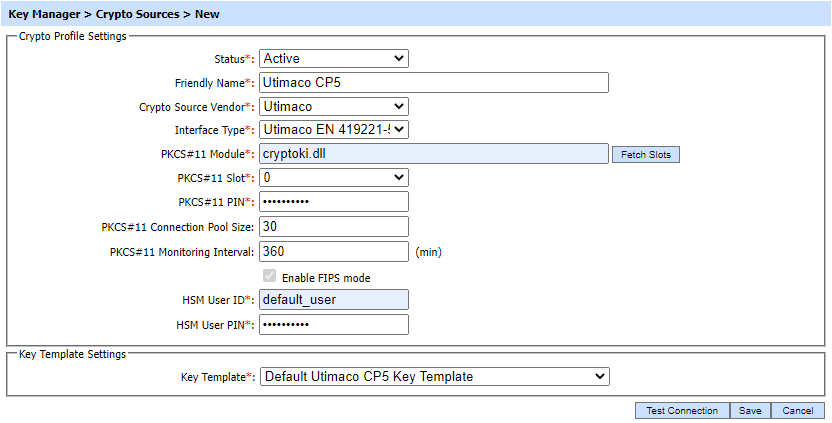 Select the option UTIMACO as Crypto source vendor. |