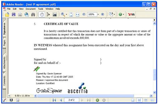 In addition to this the signer's contact details (e.g. phone number) can also be added to the signature and, although this is not part of the signature appearance, it can still be viewed within Adobe Reader® when viewing the signature properties.