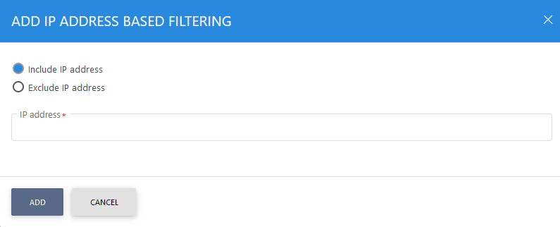 Also, choosing the option Allow access based on IP addresses and clicking +d button will show the following screen where filtering can be performed based on IP Address: