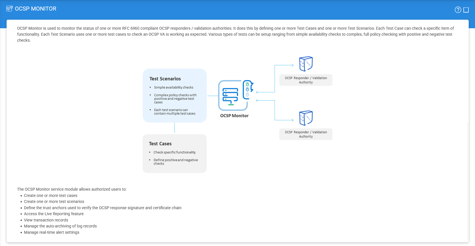 The OCSP Monitor module is used by operators to: