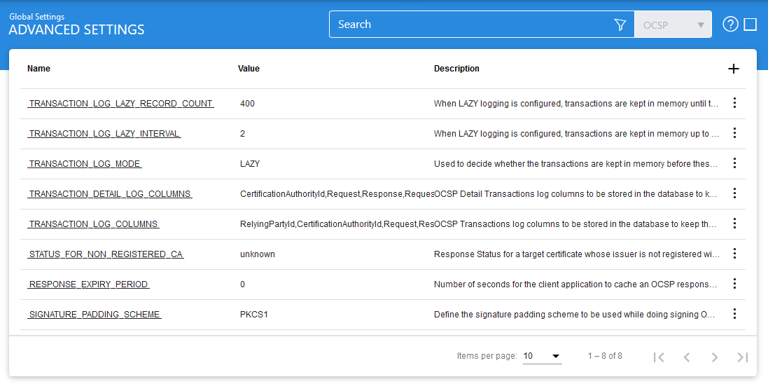 Clicking on OCSP Service > Advanced Settings displays the following screen: