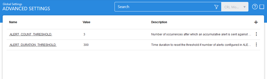Clicking on CRL Monitor > Advanced Settings displays the following screen: