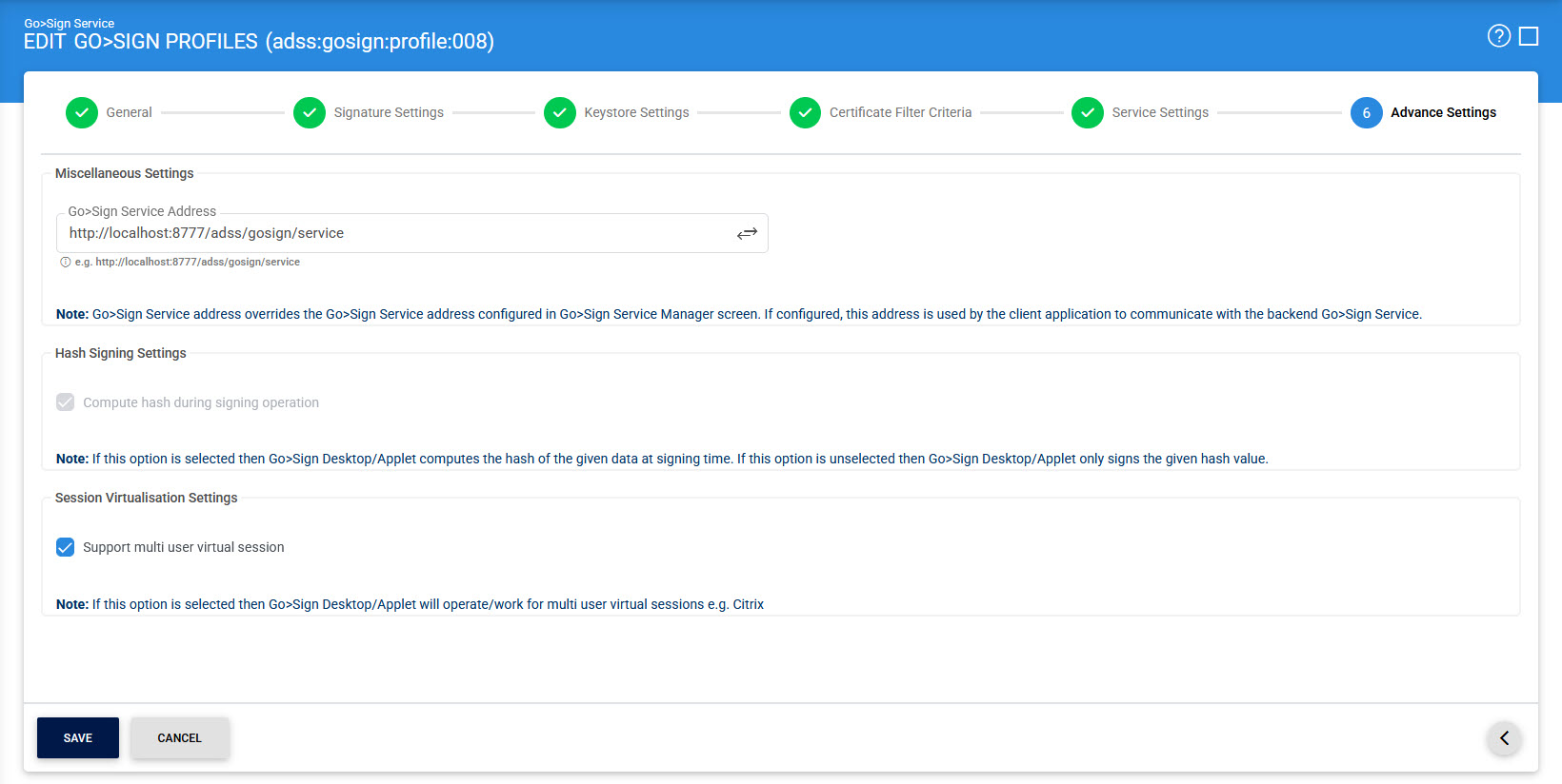 Select this option if the user want to use the Go>Sign Desktop for multi-user virtual sessions. |