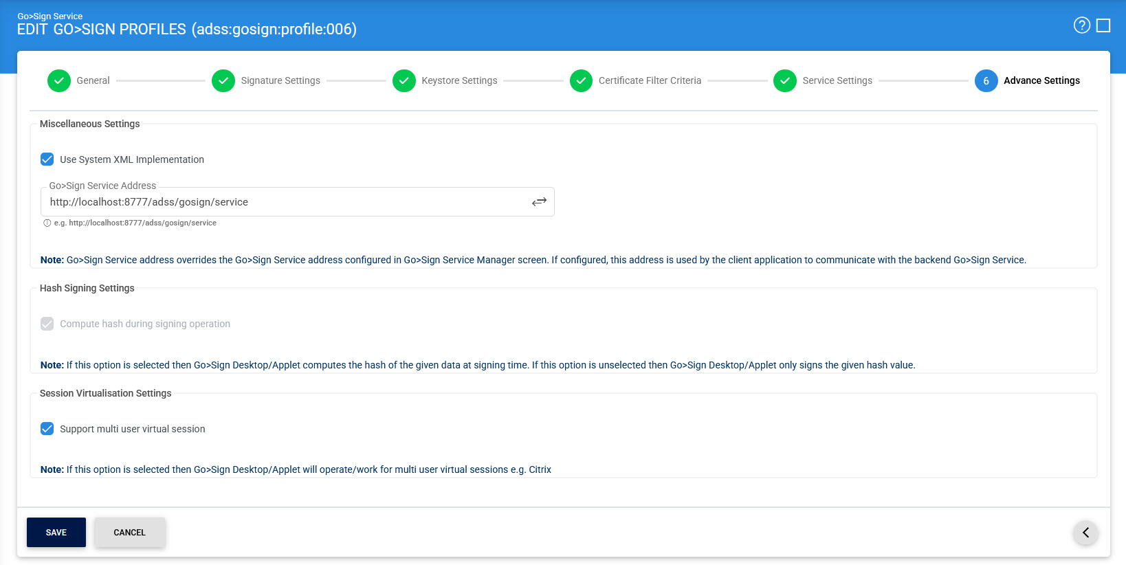 Clicking the Save button will create the Go>Sign signing profile.