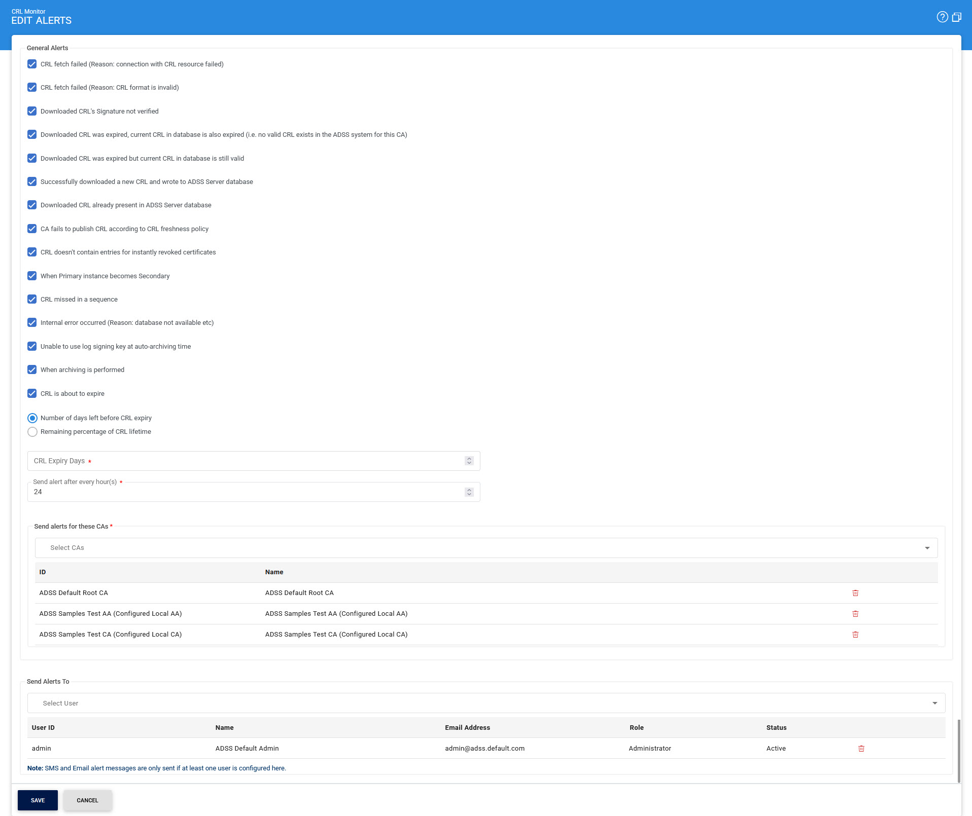 When this checkbox is enabled, an alert is triggered for the configured CAs and users whenever there is a failure to fetch CRLs due to connection issues with the CRL resource. |
