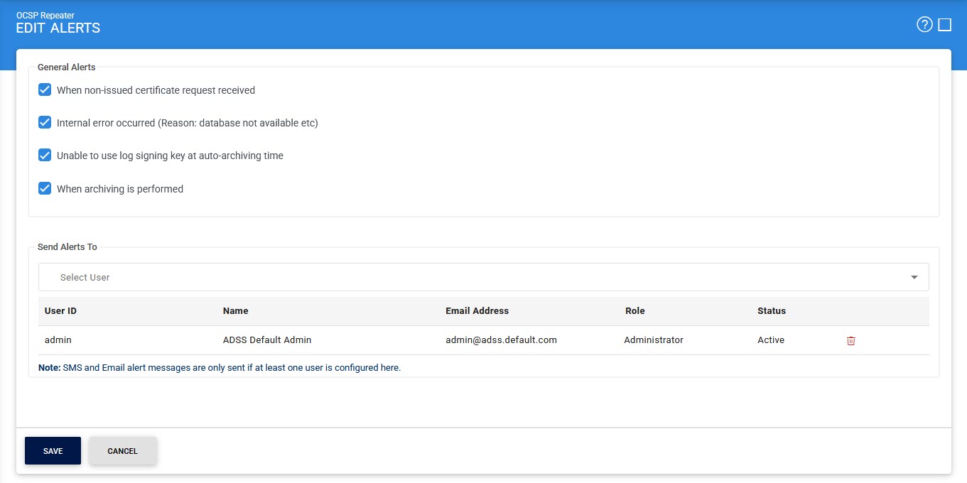 The service can be configured to generate email, SMS and/or SNMP alerts when the following events occur: