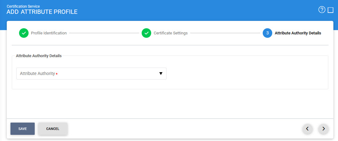 The user will be landed on AA Details section page. Here, select the required Attribute Authority from the drop-down. Once all the configurations are done, click on the Save button.