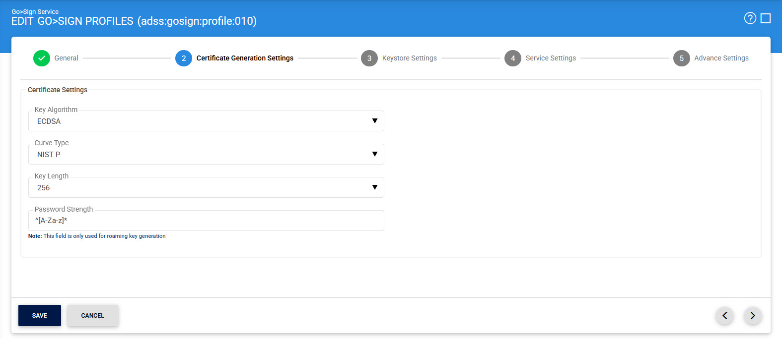 This page is used to configure the Certificate Generation Settings that will be generated in the Go>Sign Desktop.