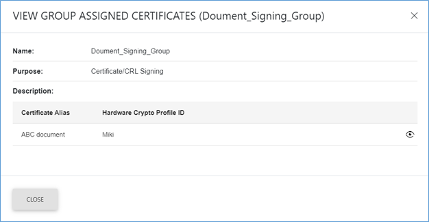 Clicking on the Eye Icon will open a window showing the certificate details.