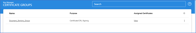 Certificate Groups can be created within the Key Manager module for certificates held in hardware crypto sources. The following screen is used to configure Certificate Groups: