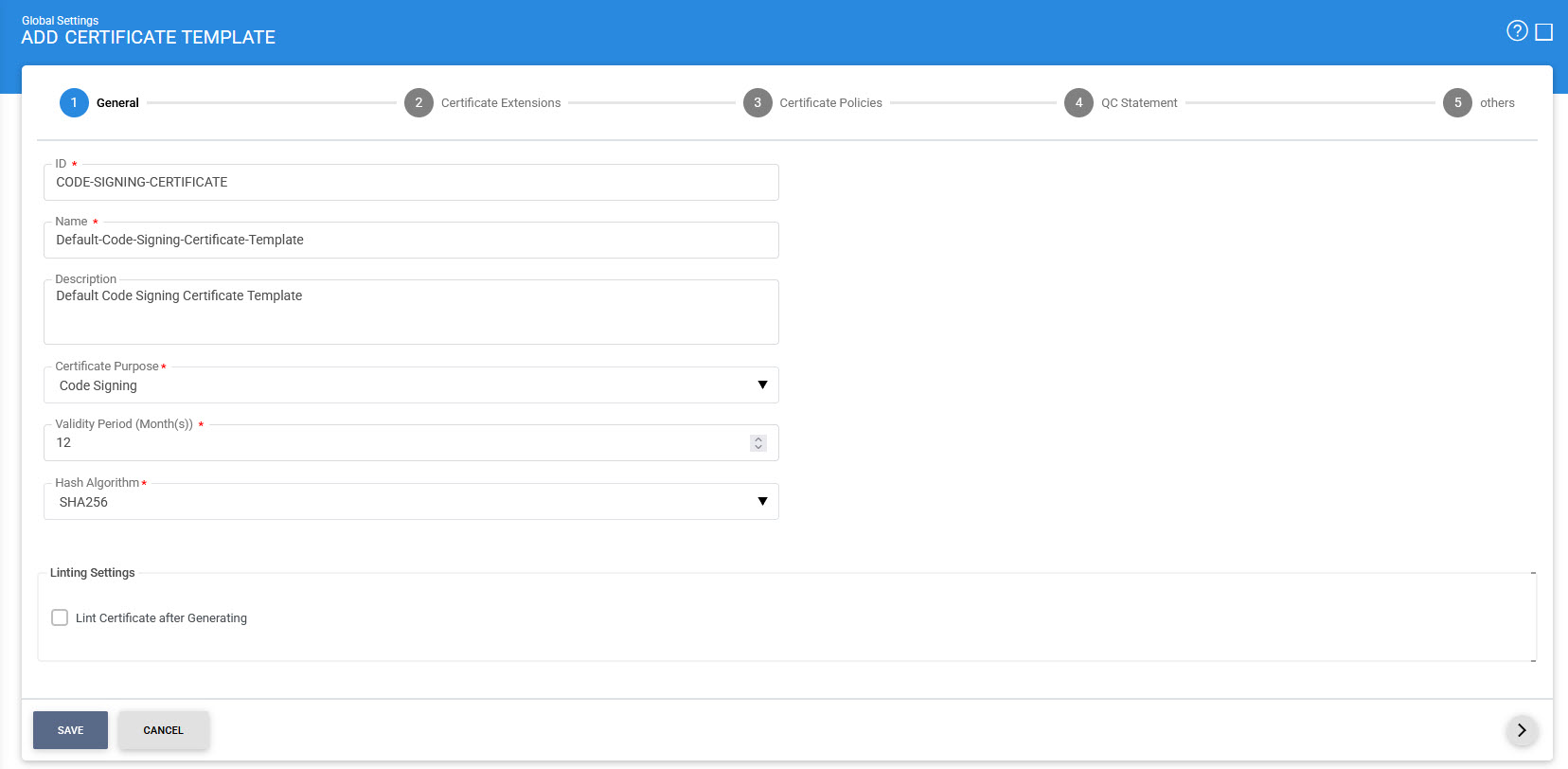 Once created, the purpose will be available in Certificate Purpose field under Global Settings > Certificate Template > New. See the image below: