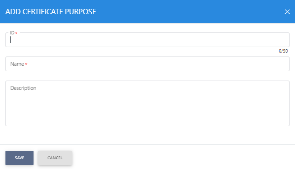 The Certificate Purpose sub-module allows the user to define their own certificate purposes for their required certificate template in ADSS Server. Once defined, the newly created certificate purpose will be available in the Certificate Purpose drop-down field in Certificate Template.