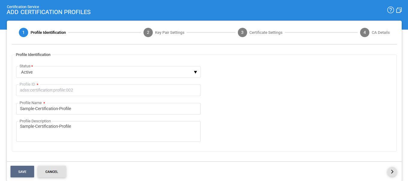 The first step is to define the identification details of Certification Profile. The user need to fill the below fields with the appropriate information: