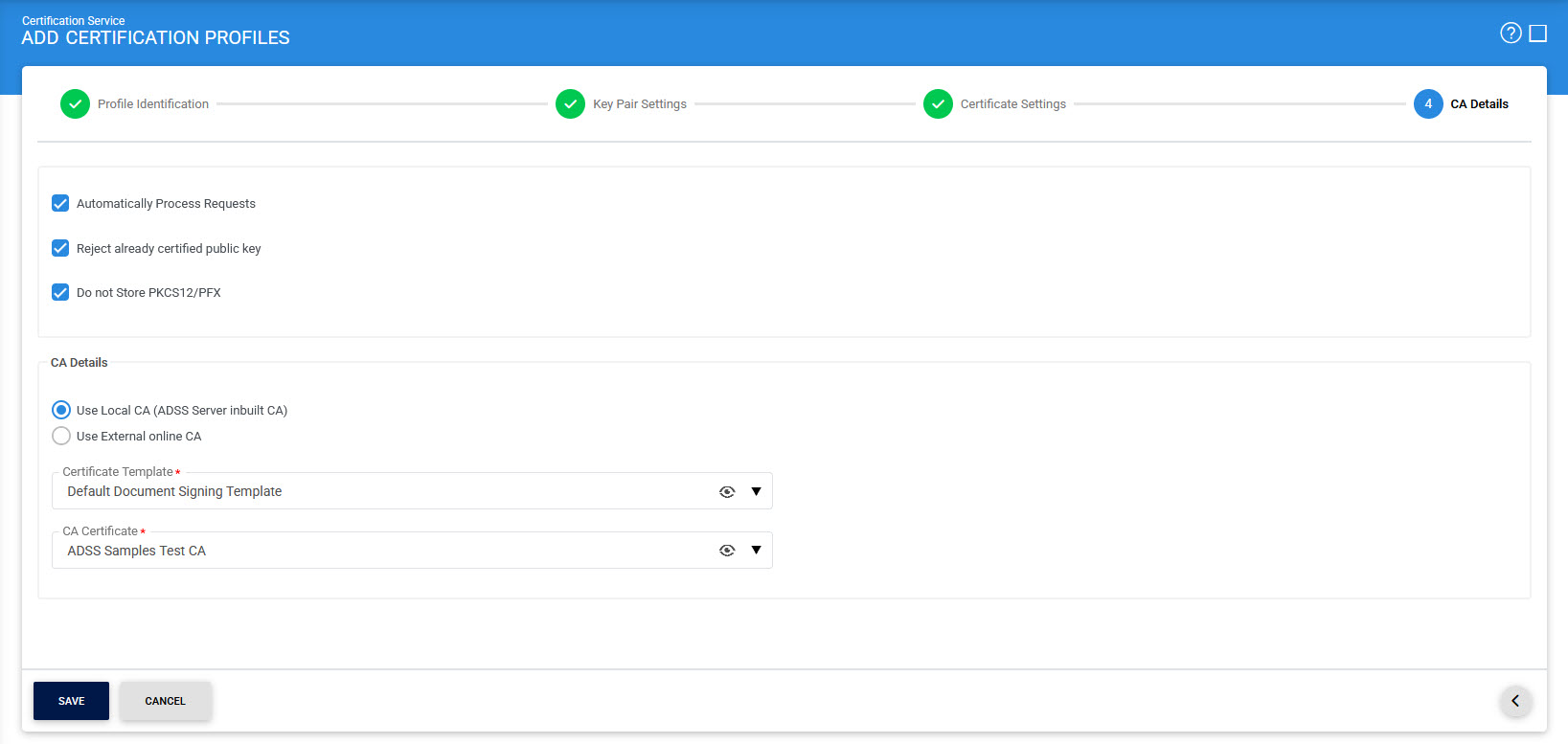The last step is to define the CA Details for Certification Profile. See the below image: