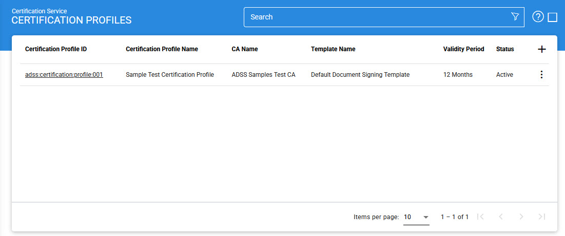This table shows the list of existing certification profiles. These can be edited or deleted.