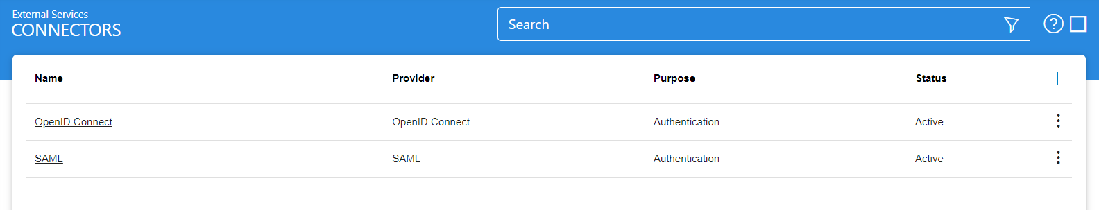 Clicking on the Connectors button under Global Settings shows the following screen: