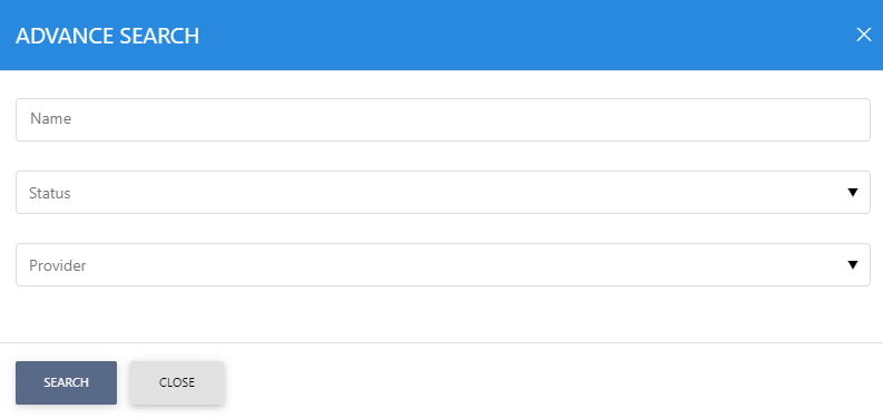 Provide a search criteria containing the Connectors Name, Status and Provider in their respective fields. If more than one attribute is provided, they are combined using an AND operand and the relevant results are shown.