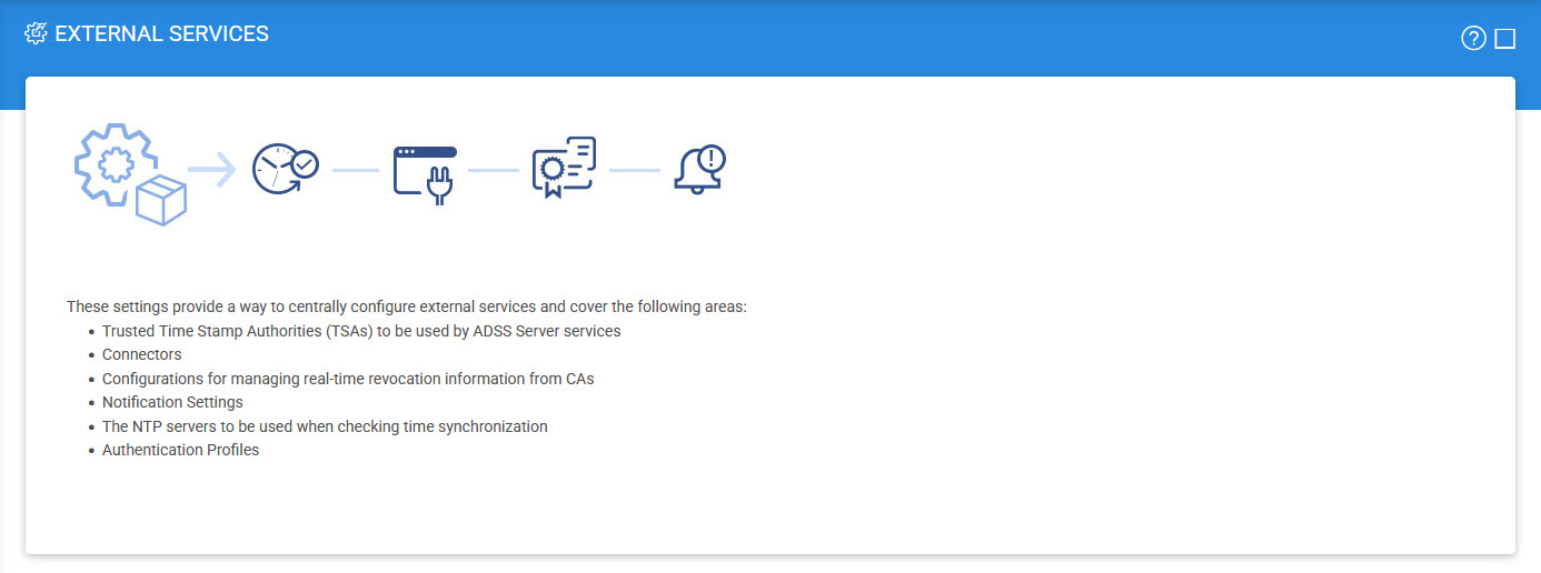 This module is used to configure ADSS Server settings for establishing a secure communication channel with external service: