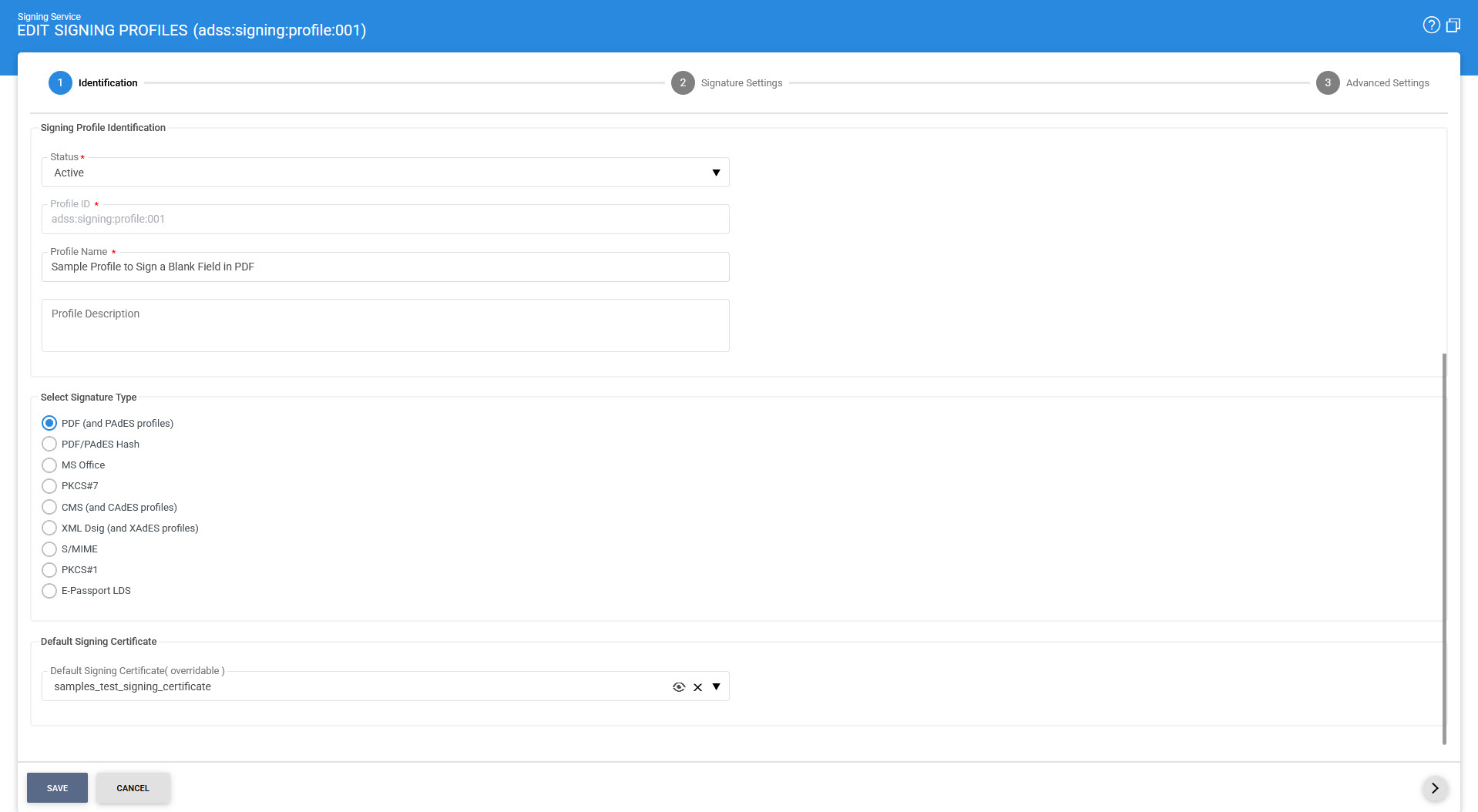 A signing profile may be marked Active or Inactive. An inactive signing profile cannot be used to process signing requests. |