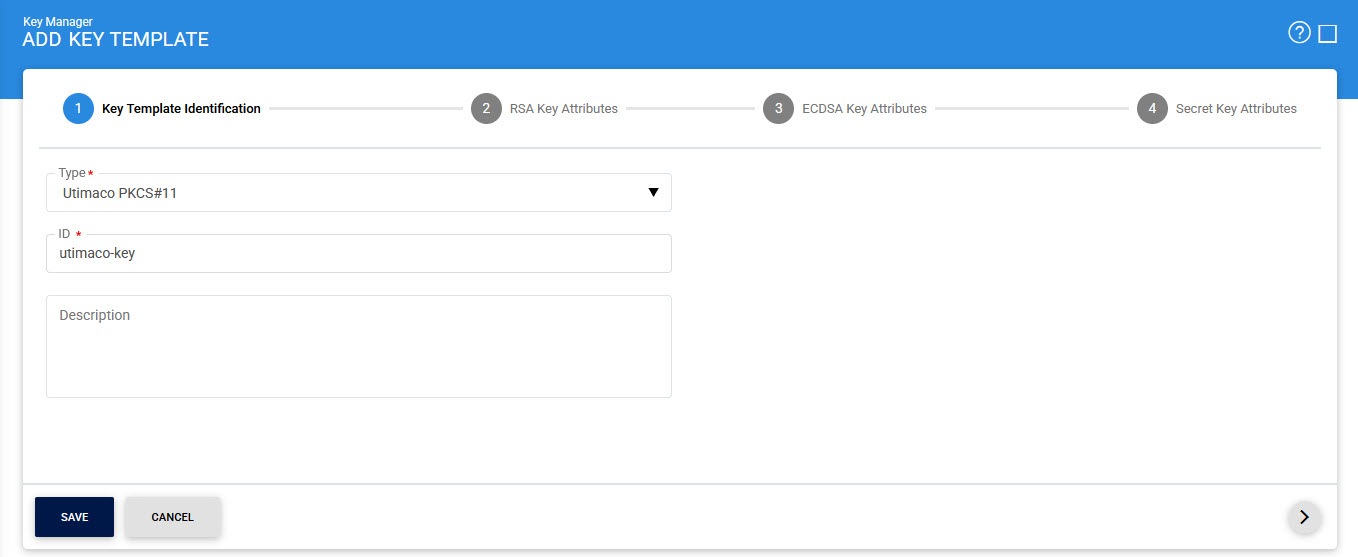 The above screen shows the basic information about the key template. Fill in the required information and click on the Next arrow (>), it will lead you to RSA Key Attributes screen.