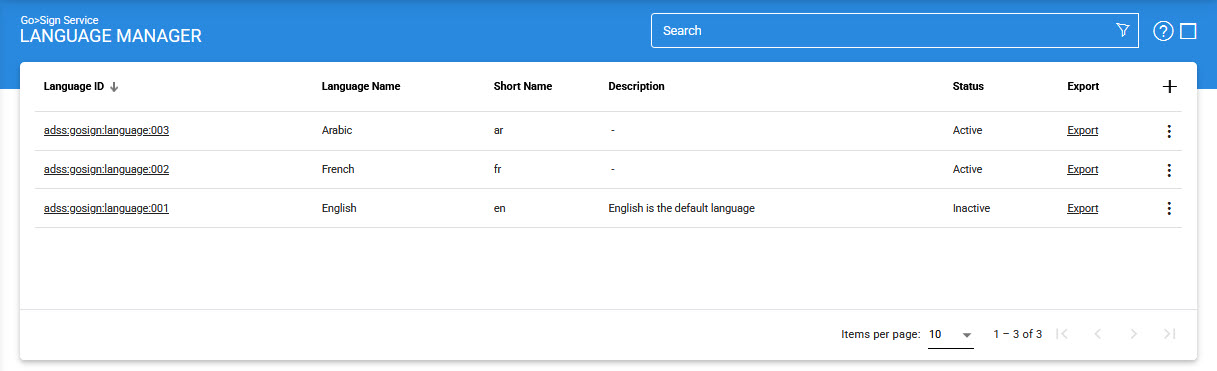 The Language Manager module enables a user to add any new language which can be used in Go>Sign Viewer. By default English is used as a default language.
