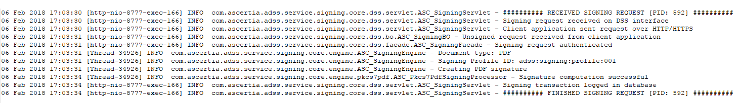 The level of detail recorded within the log files can be changed by editing these settings inside the relevant ADSS Server component i.e: