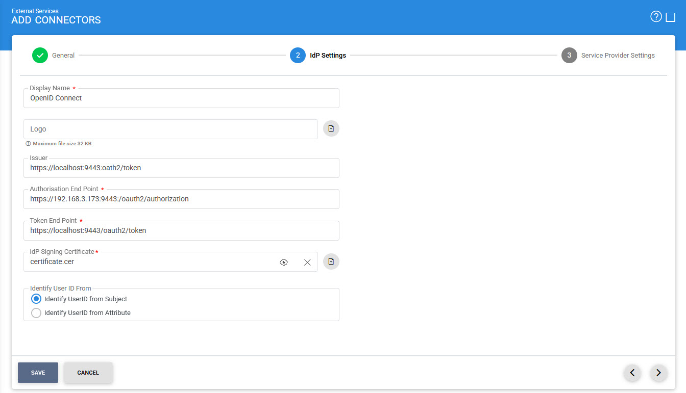 While configuring an OpenID Connect based IdP, the following screen will be displayed: