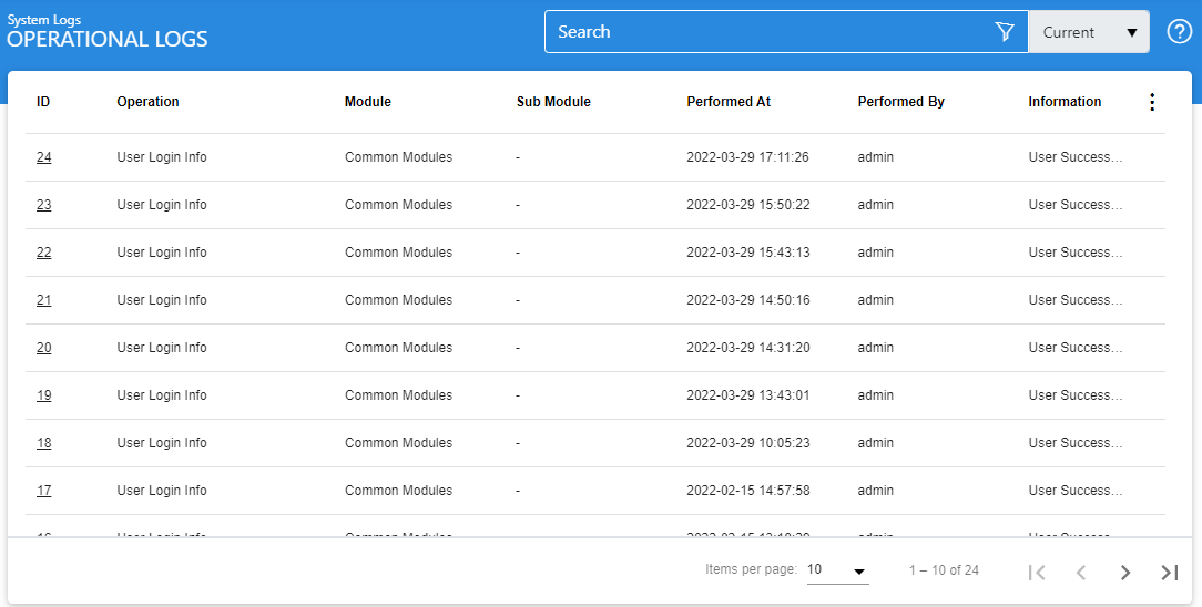 Operational Logs record any change to any record within the ADSS Server database as a result of an operation performed by an ADSS Server user (i.e. normal user, administrator or any other role holder). The change could be insertion, modification or deletion of any record.