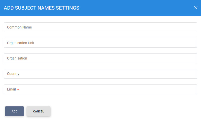 Fill in the respective fields with the required subject name information and click on the Add button. |