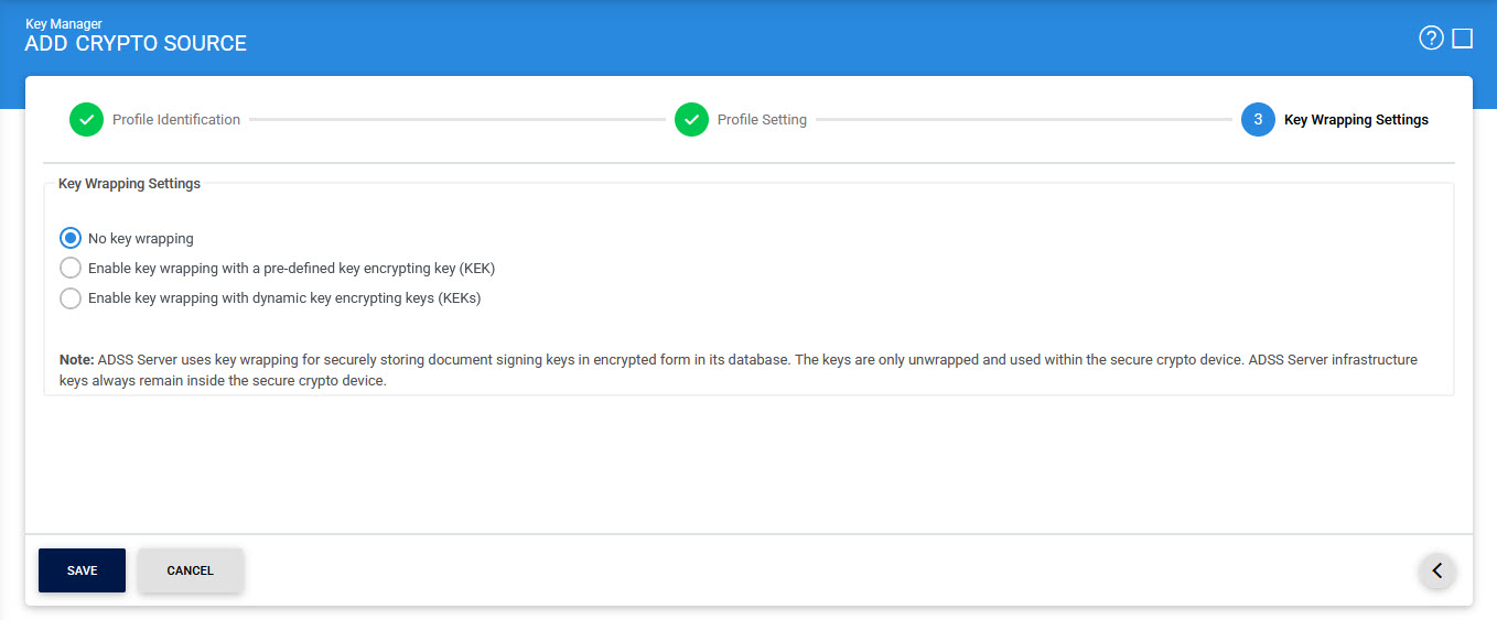 If Key Wrapping is enabled in the ADSS Server license then the user will also see this options only when Crypto Source type is PKCS#11: