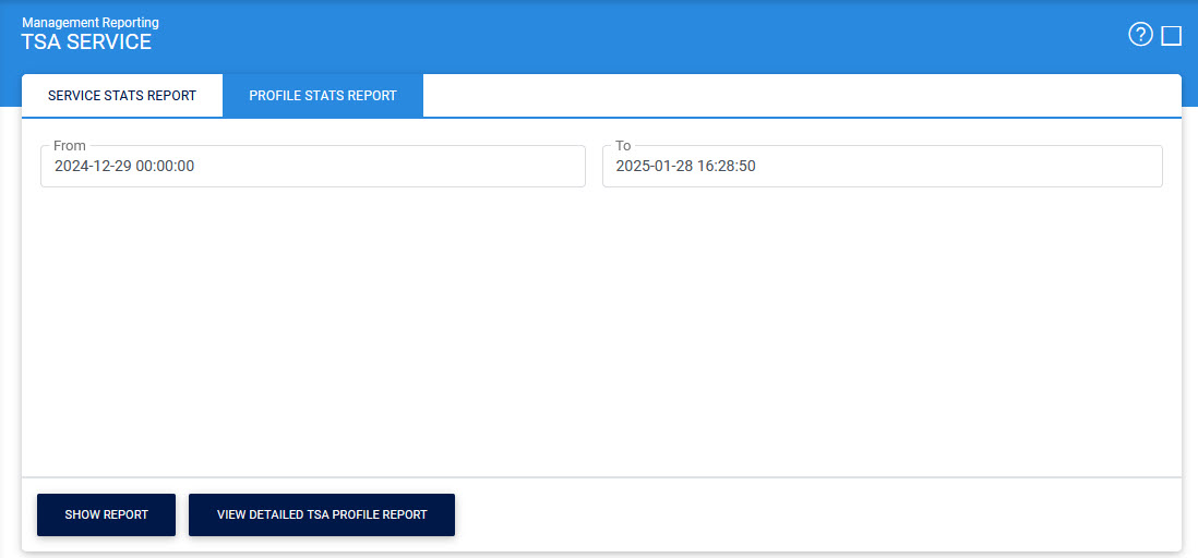 Clicking on the 'View Detailed TSA Profile Report' button displays the following screen: