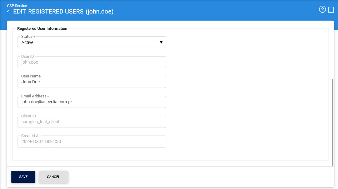 Shows the SAM User ID if registered in ADSS SAM Service. For more details see the Quick-Guide-for-ADSS-SAM-Deployment.pdf available at location: [ADSS Server installation Directory]/docs. |