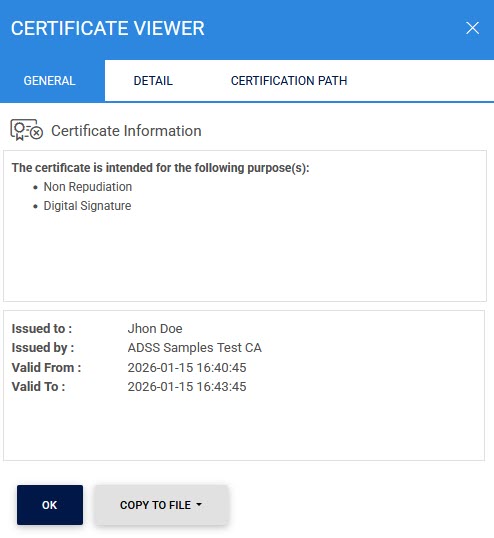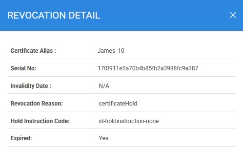 By clicking on Certificate Alias of the revoked certificate, the following screen is displayed: