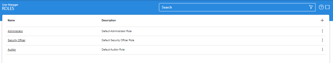 Click on the Manage Roles button to see a list of the roles currently defined on ADSS Server: