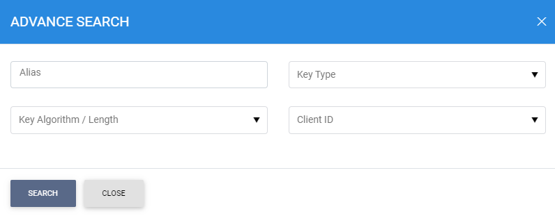 Clicking on the Advance Search icon on the main Encryption Keys page will display the following screen: