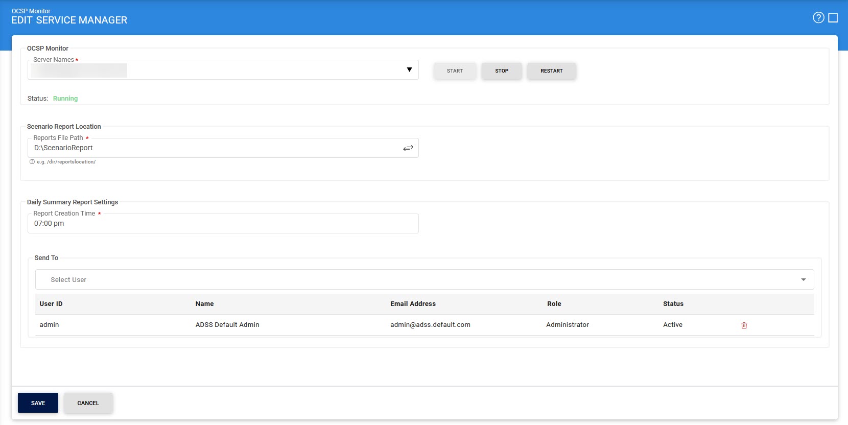 The ADSS OCSP Monitor Service Manager module allows authorised operators to start or stop OCSP Monitor and to make changes to service related configurations.