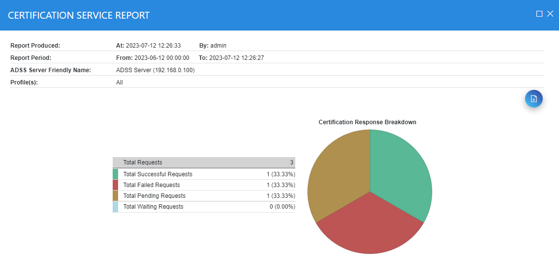 To view a comprehensive Certification Service report, click on Show Report button. It will lead you to the following screen: