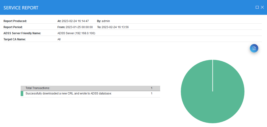 By selecting the Service Report link from the top of the page, the following screen will be shown. By default it shows the transaction details for the last 24 hours: